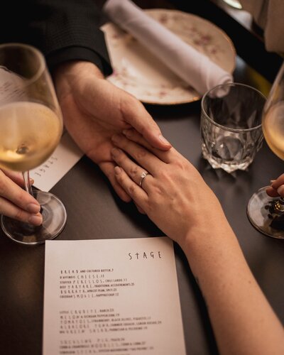 Hannah and Zane wanted their shoot to feel like something familiar and meaningful. So we met at their favourite restaurant, Stage Wine Bar, where we shared laughs and stories over wine. The whole evening felt relaxed and full of love, just like their relationship. I cannot wait to photograph their wedding in 2025.